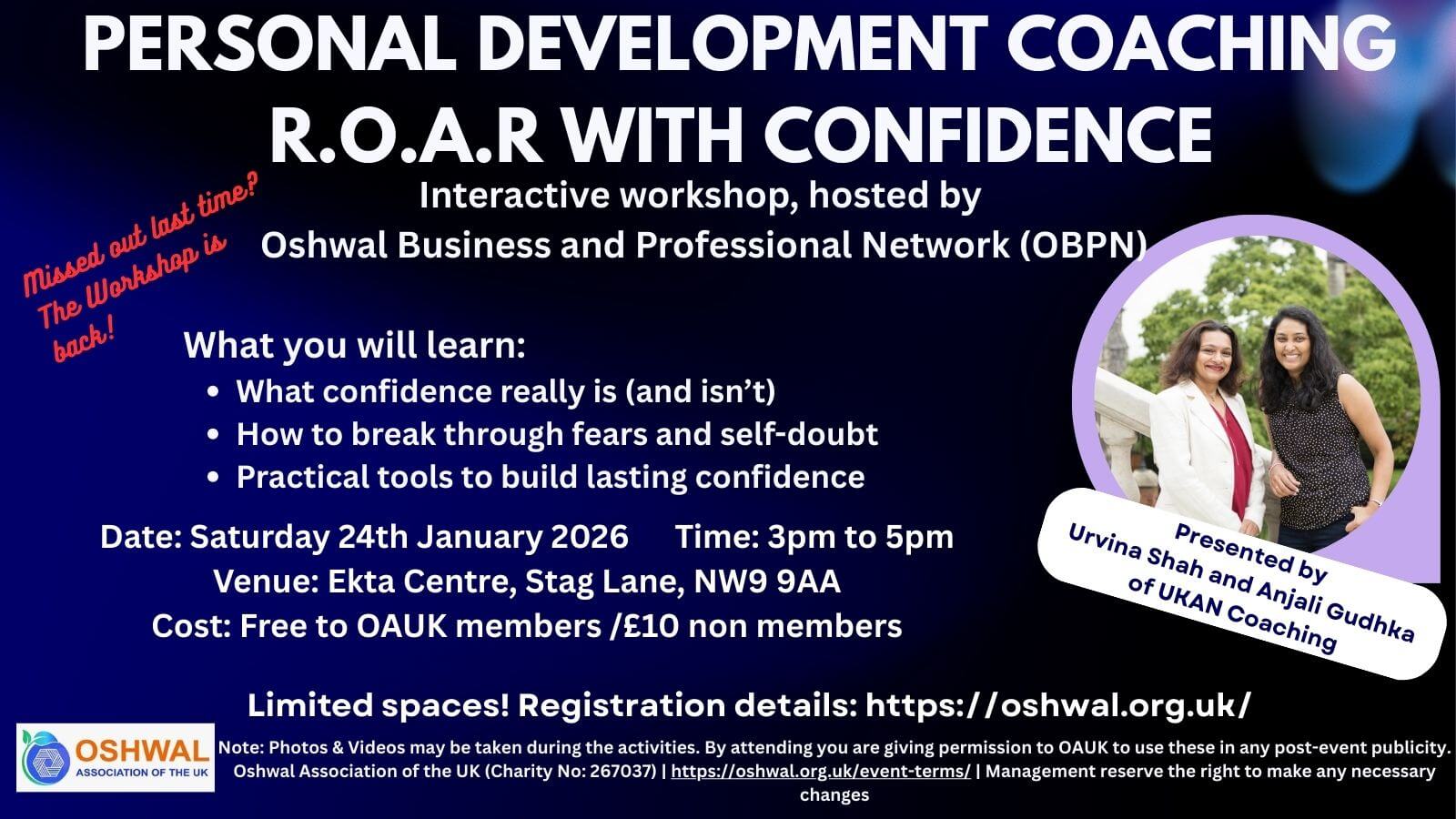 For any emergency bookings, please email ektacentre@oshwal.org or call 0208 206 1141