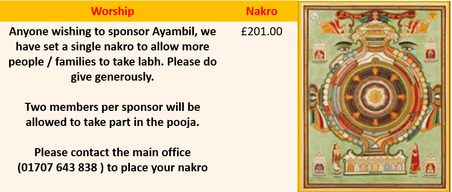 Day 1 to 9 Ayambil discourses will also be live streamed on YouTube – click here