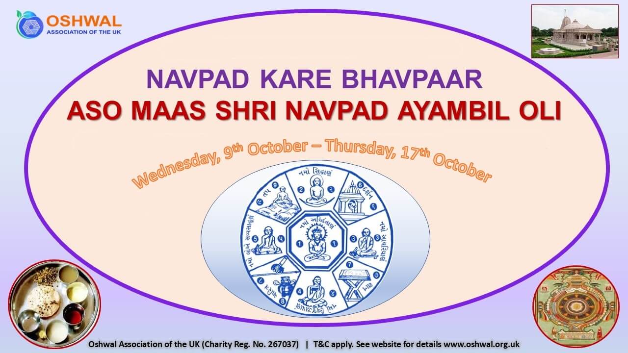 A very warm invitation to you all to join in the auspicious Shri Navpad Ayambil Oli for members of all nine areas, organised by the Oshwal Association of the U.K
