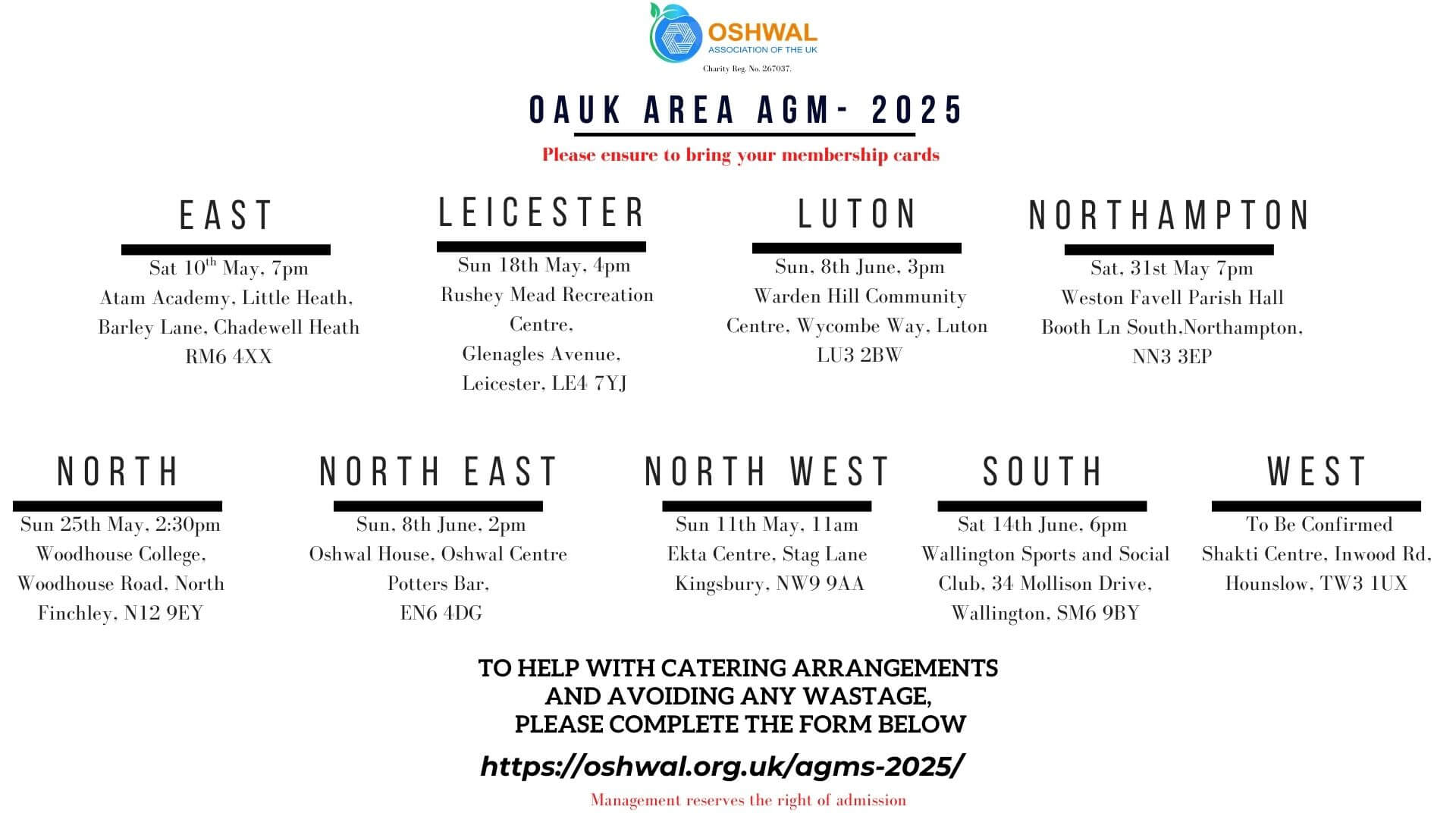 To help with catering arrangements and avoiding any wastage, if you are attending, please fill out the on-line registration form located below the table below.