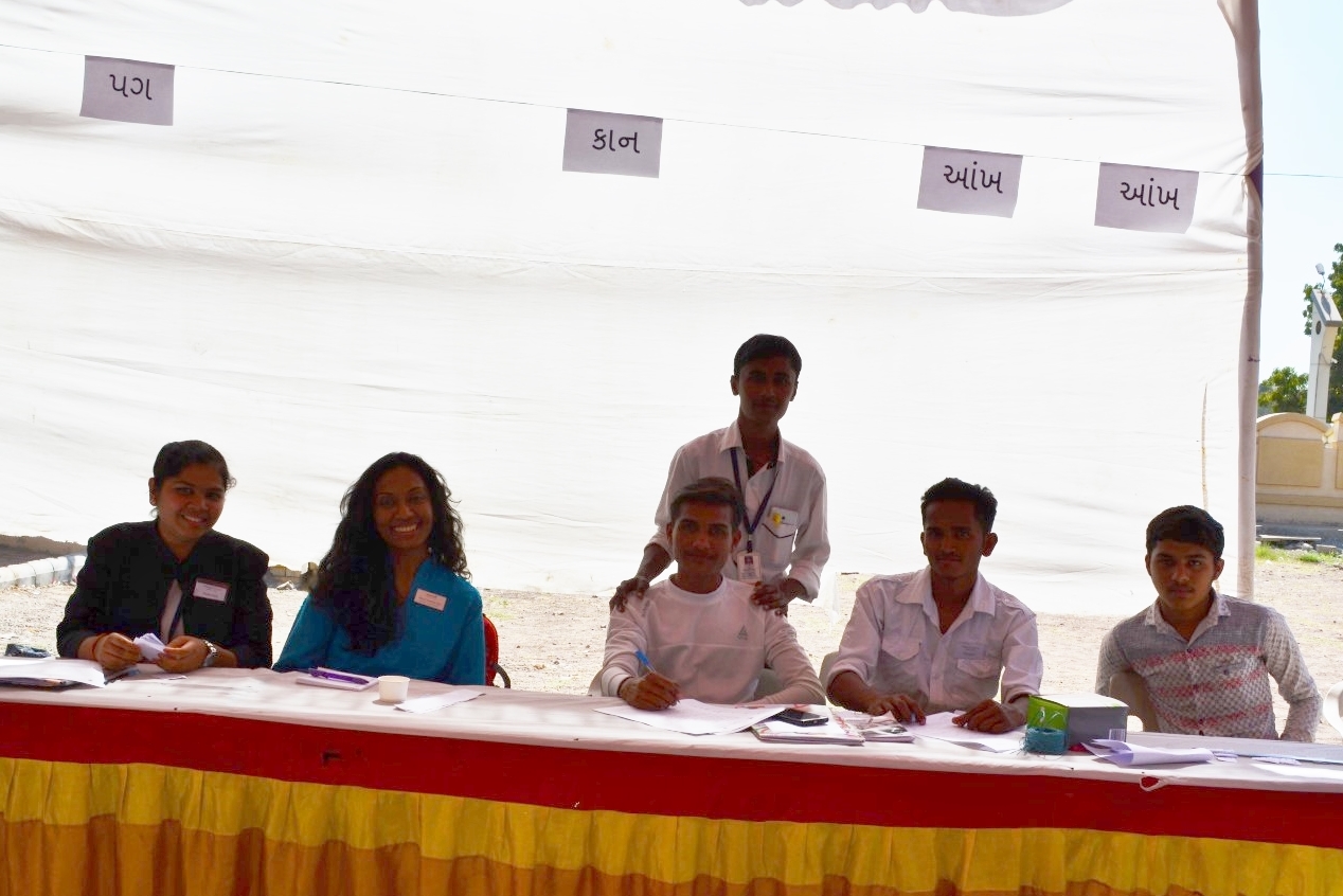 Volunteers from UK and India worked hand-in-hand on all manner of tasks, beginning with registration. Everyone who came of the Medical Camp had to register and filled in a form with their details and they were then directed to the relevant area, from eye camp, hearing testing, to Jaipur Foot clinic.