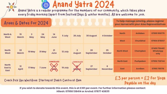 Anand Yatra is Back! Every Friday mornings at Oshwal Centre with darshan and pooja at Derasar, yoga and card games followed by a freshly prepared hot lunch. £3 payable on the day. Please refer to the attached poster for more information.