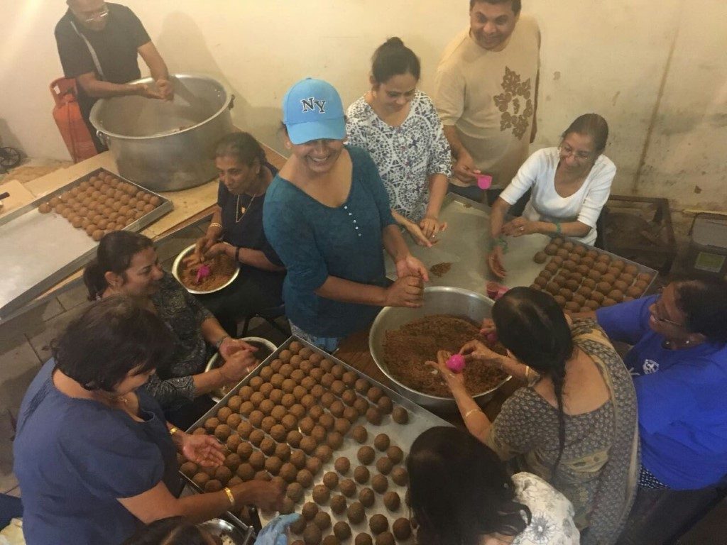 On Thursday afternoon after setting the ladoos were packed for Oshwal Centre.