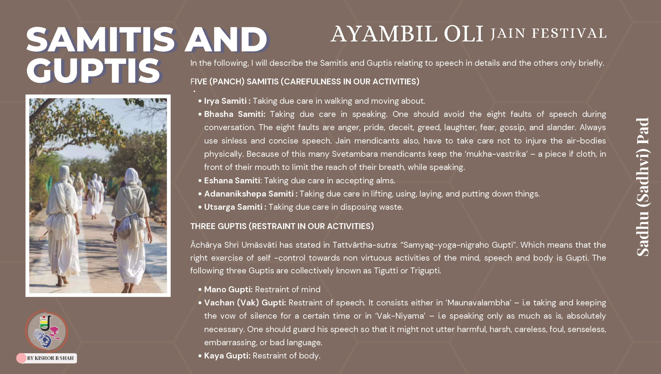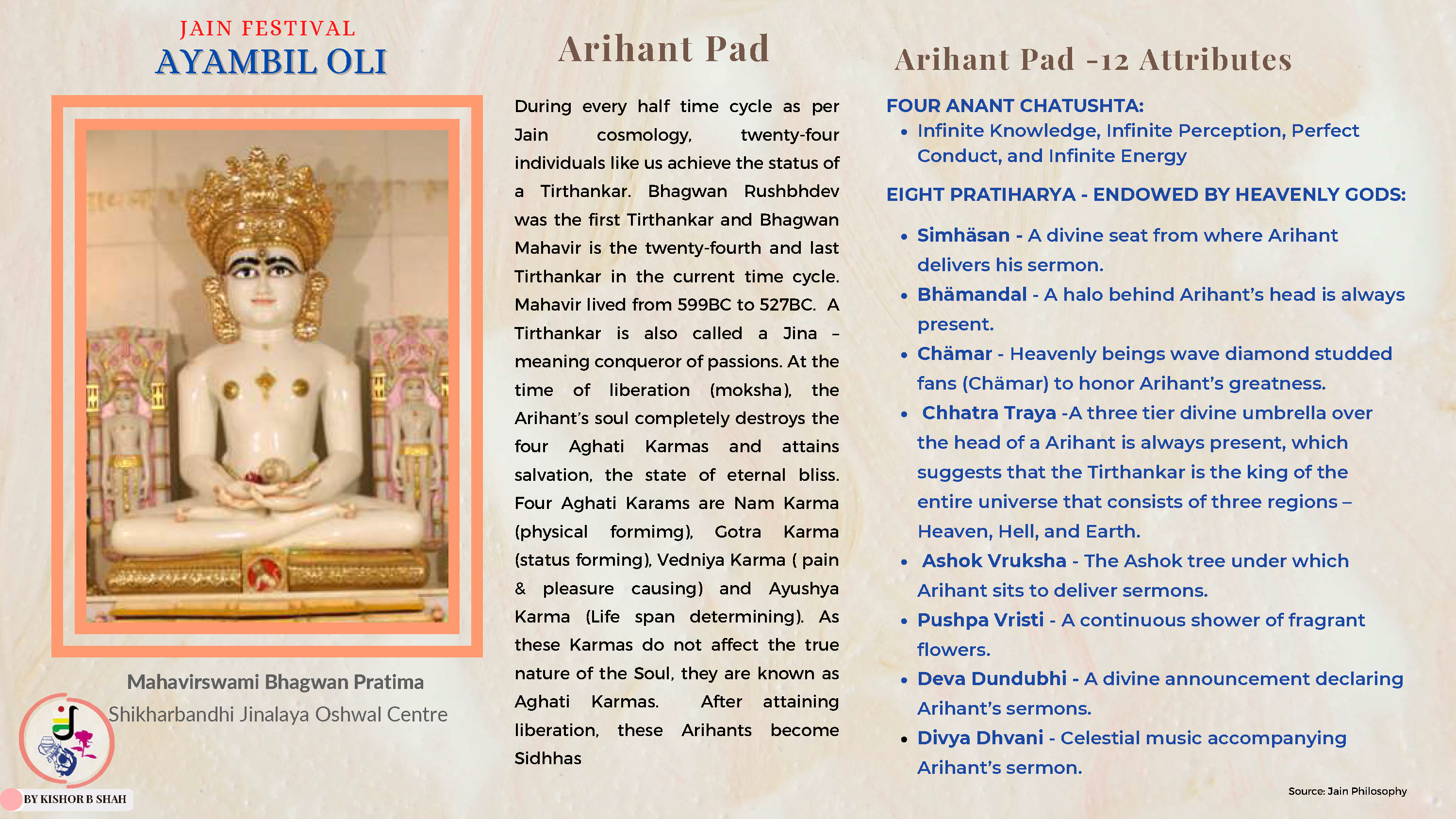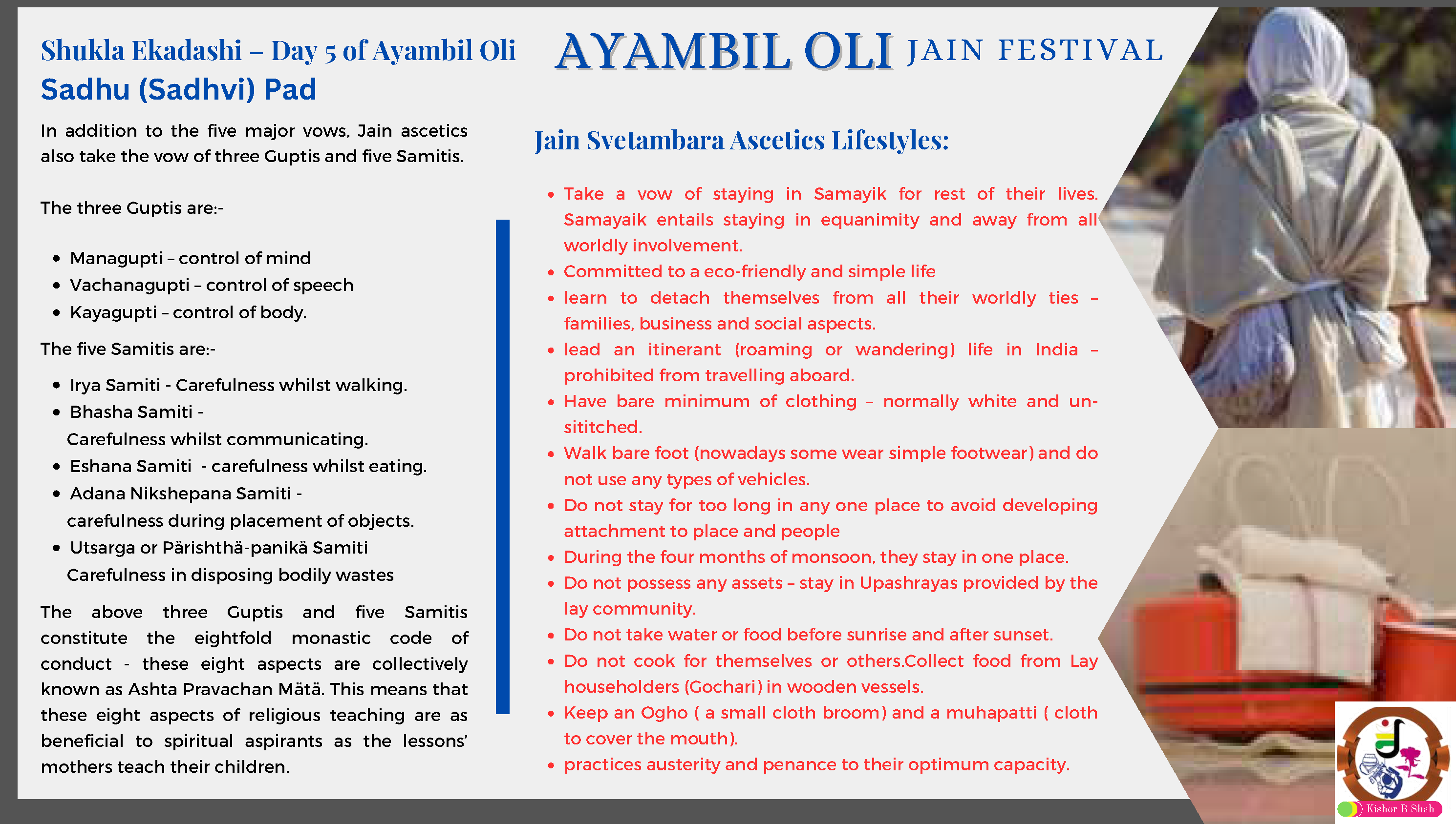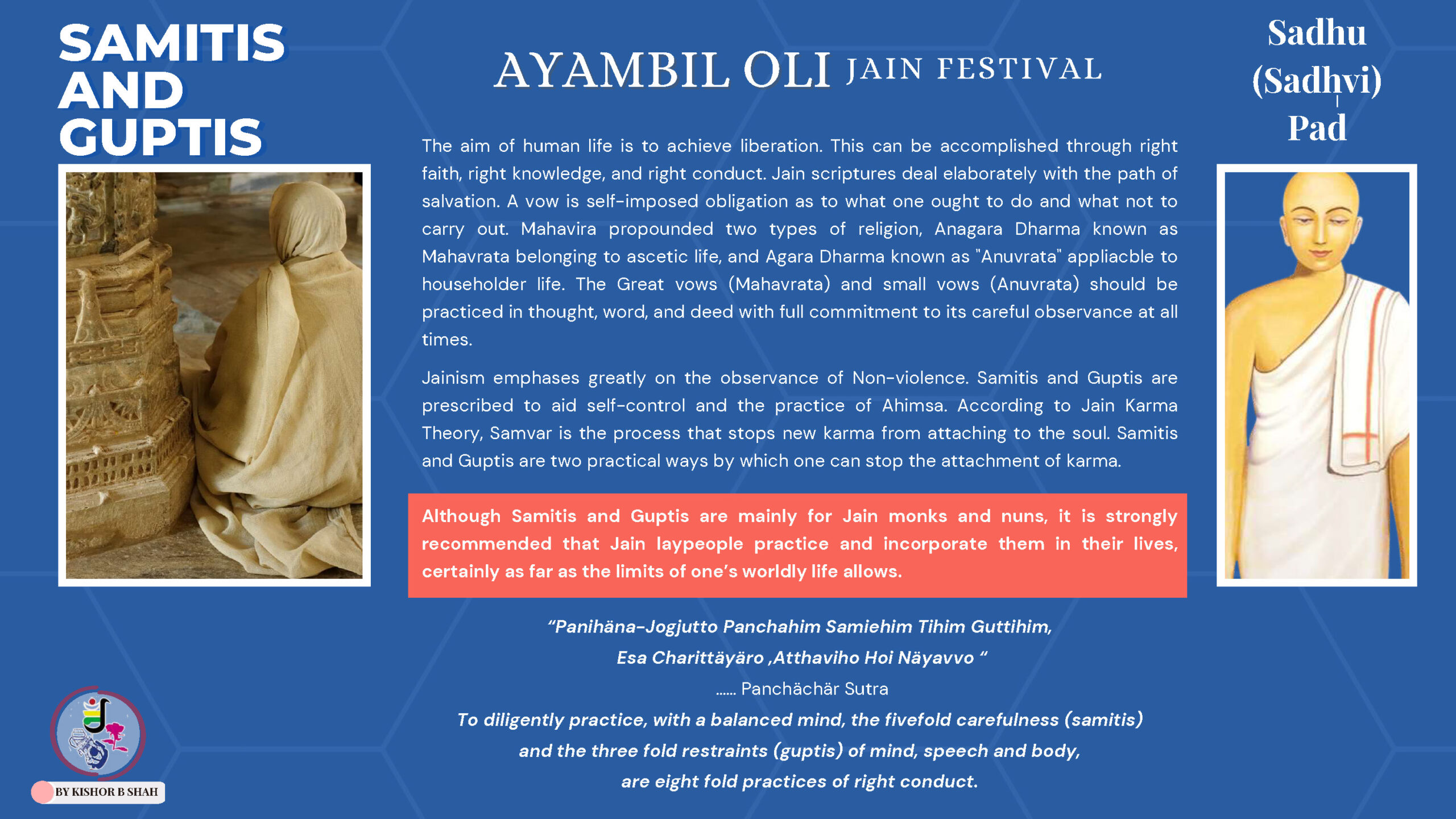 VENUE: Ayambil as always will be taking place at Oshwal Centre each day. There will be vaachan from 11am and thereafter bhojan.