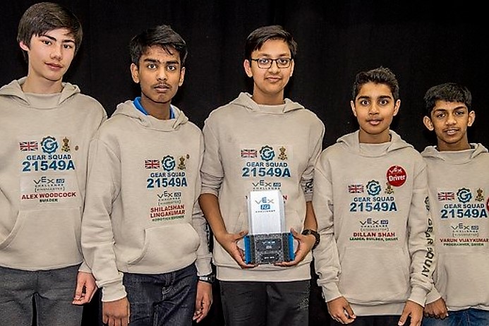 Dillan Punit Shah, aged 14, son on Punit Amritlal Shah and Priya Punit Shah, has accomplished an enormous challenge in leading his team Gear Squad, consisting of 5 pupils including himself to outstanding success at the Vex IQ Robotics World Championships 2018 that have just been held in Louisville, Kentucky, USA. This robotics competition has been classified in the Guinness Book of Records as being the biggest in the world!