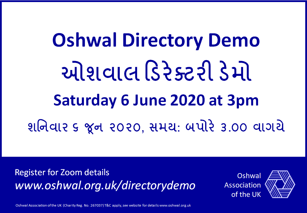 As you will know we have recently launched the new Oshwal Directory website. We thought it would be useful to do a demo on how to use the new website. The demo will be in English and Gujarati and cover all aspects of the new website.