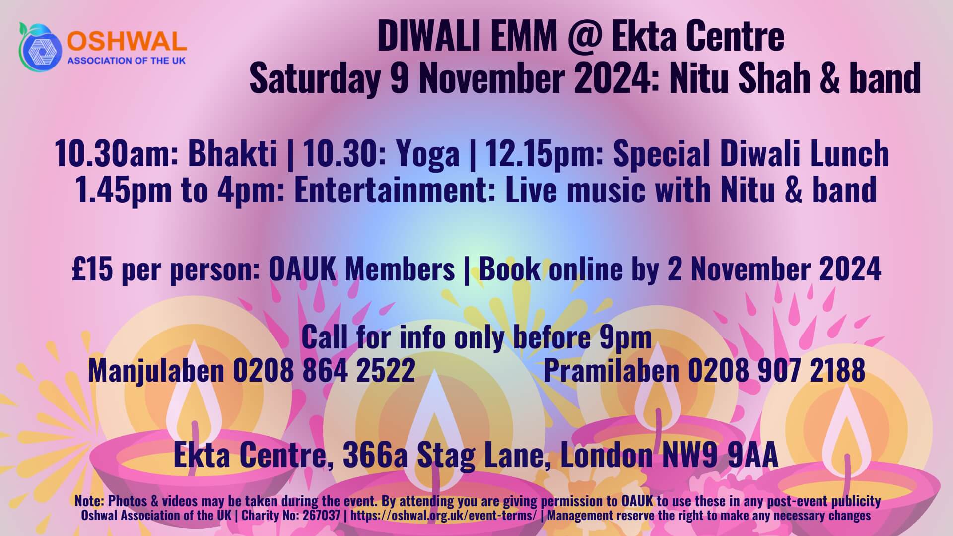 Bhakti @ 10.30am, Yoga @ 10.30am, Diwali Special Lunch@ 12.15pm;