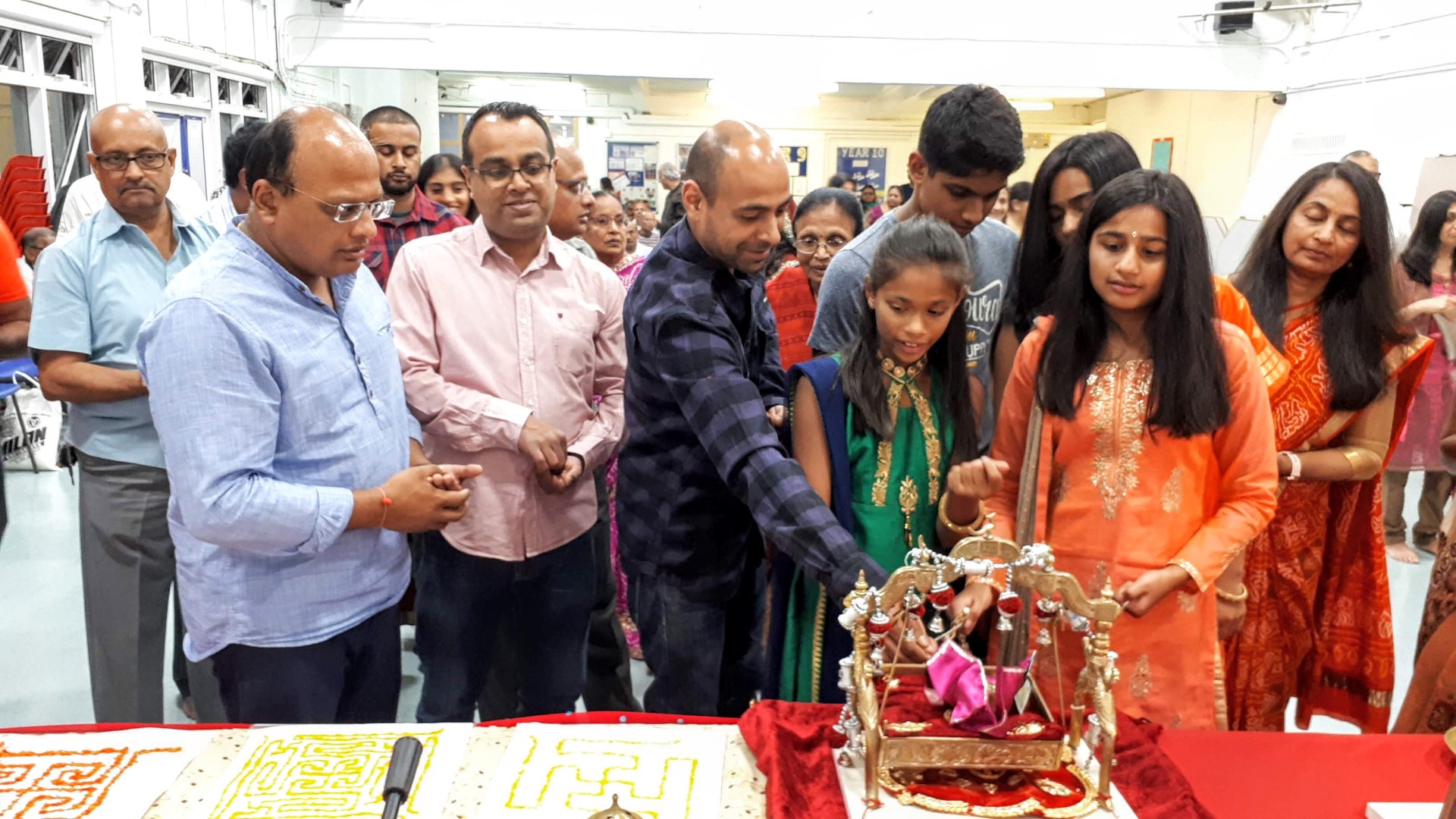 The fourteen sapanas were worshipped by the family who bid for them. The parna ma srifaal padhravanu was performed by Monghiben Raichand Gosrani Family, Parnu Julavanu was performed by Pushpaben Ramniklal and family. Aarti was taken by Dhirubhai Veji Malde and Mangaldivo was by Bhagwanjibhai and Bhanuben. The prabhavna was from Jaywantiben and Kapoorbhai in memory of Late Devchand Dharamshi Savla and Vejiben Family.