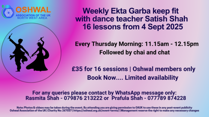 Price (Oshwal members only) – £35