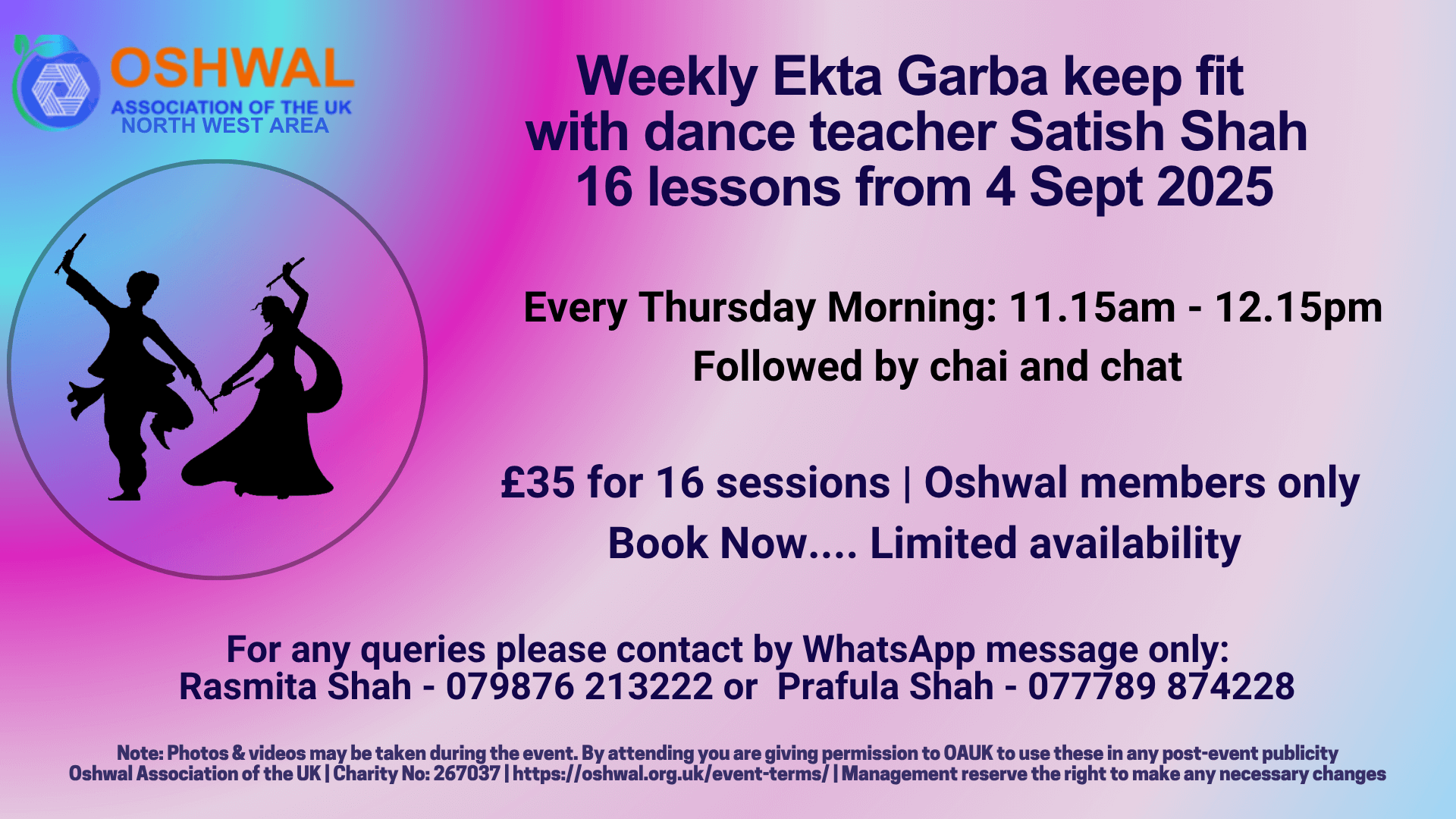 Please read the event terms & conditions https://staging.oshwal.org.uk/event-terms/