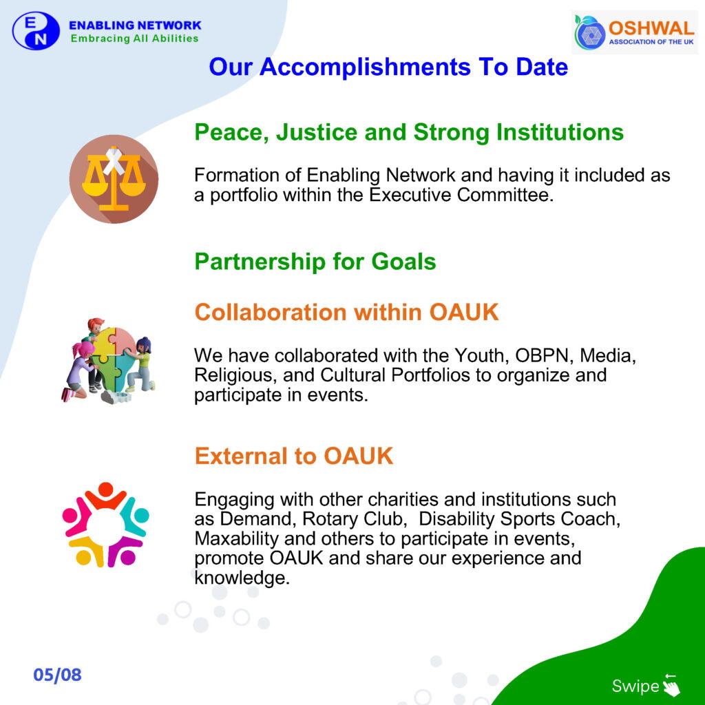 Each year, OAUK and EN celebrate IDPD in different ways. In line with the IDPD theme for 2023, OAUK and EN are celebrating by recognising the Oshwal community’s accomplishments to date in fostering a more equitable community for our members and highlighting our future aspirations. These are detailed in a booklet for this years’ theme.