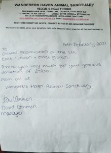 EAST AREA DONATION TO THE WANDERERS HAVEN ANIMAL SANCTUARY: