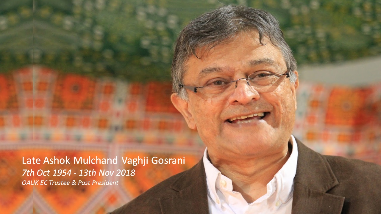 Today we have all gathered here to pay our respect and prayers for Ashok Mulchand Vaghji Gosrani.