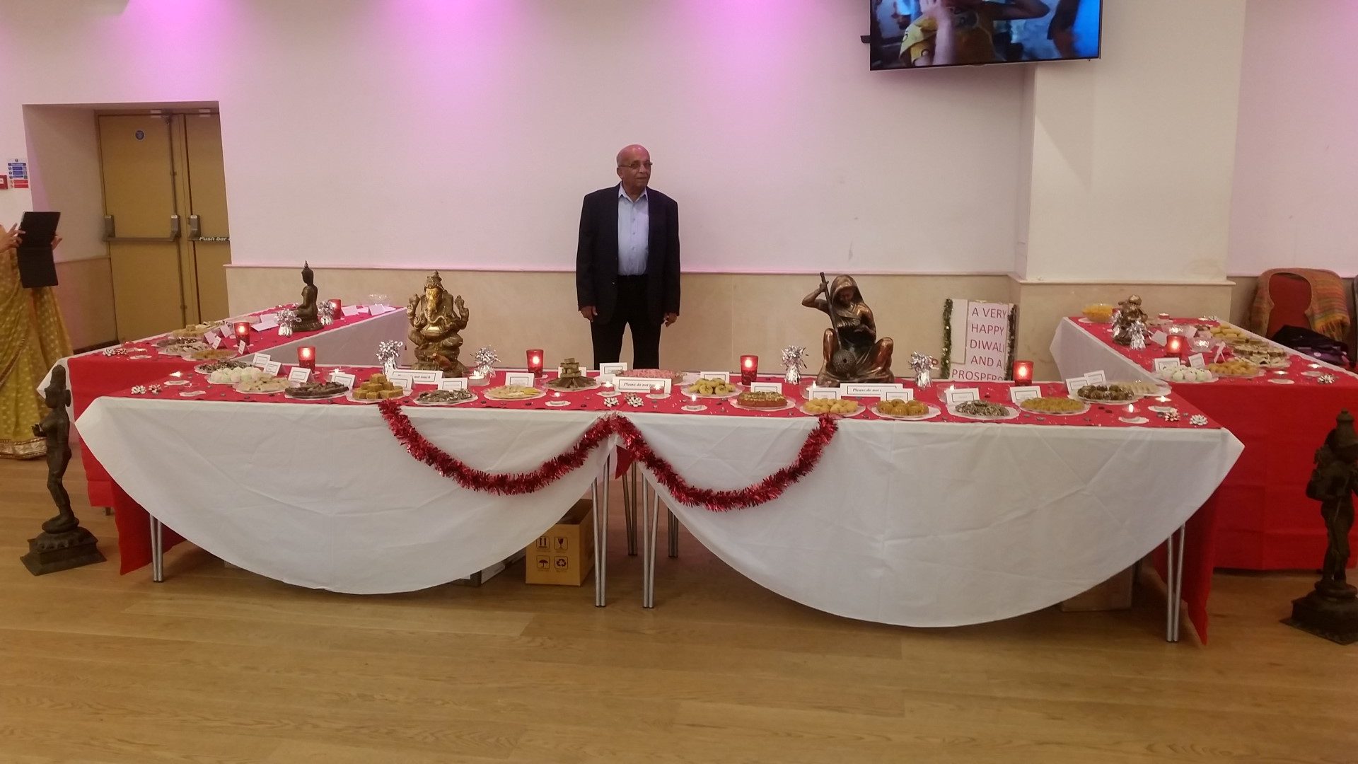 Few volunteers went on Saturday to set up the tables ready for the mithais to be put on display on Sunday.