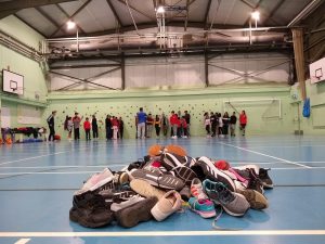 We then moved onto playing a club favourite, the ‘Find Your Shoe’ game. The game involved describing your shoe to the player in front, for them to find it in a pile of shoes. The first team to have all their shoes on their feet and sat down were the winners!