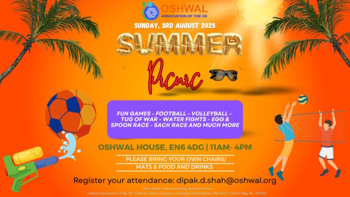 Come and join us at Oshwal Centre on Sunday 3rd August from 11am to 4pm for a FREE Summer Picnic.