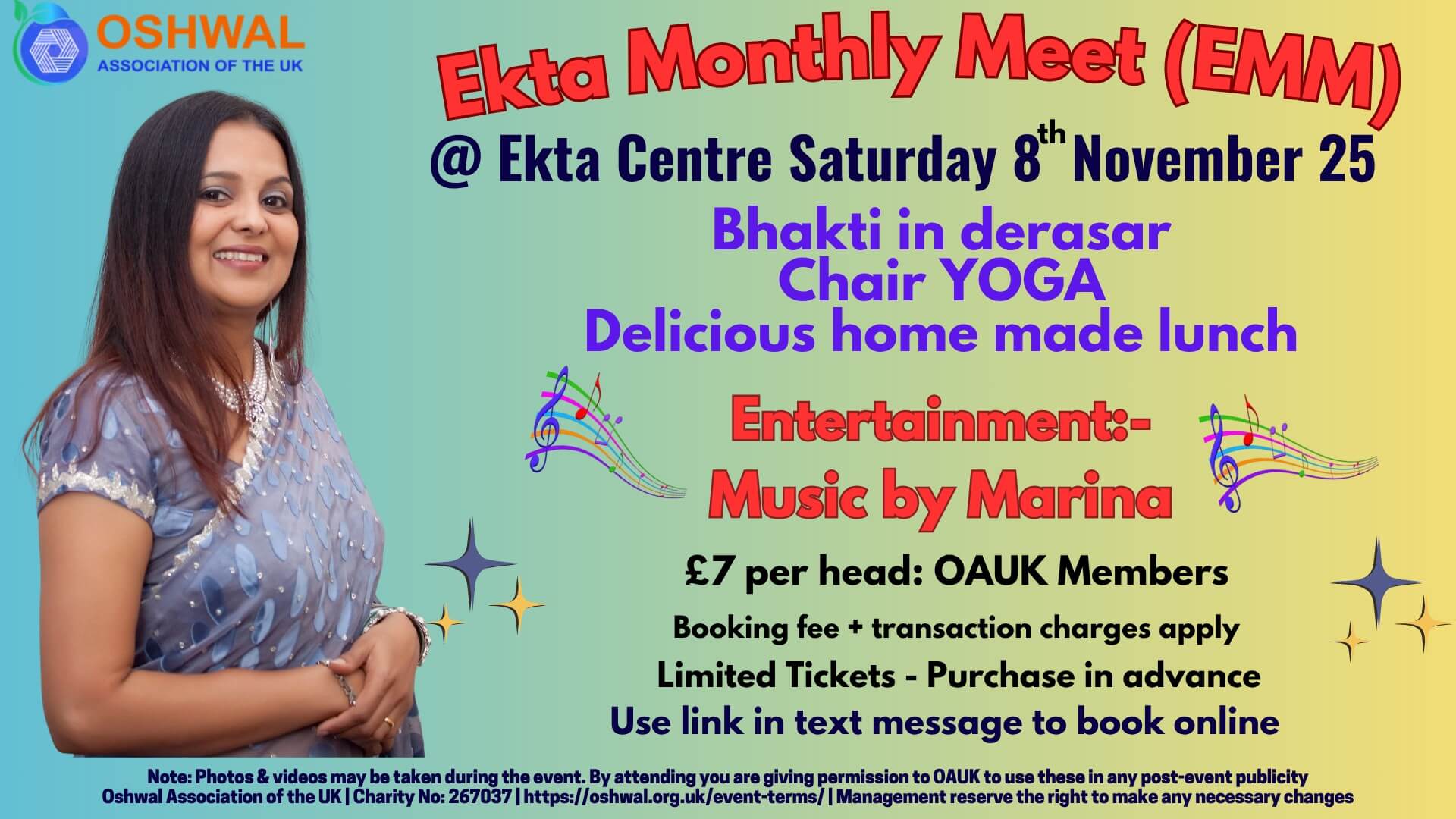 1:45pm Members Engagement – Marina performing Bhakti, Bhajans, Ghazals, Gujarati Garba Music * To enquire about our new sponsorship scheme contact Rahul by whats app 07939 076 510