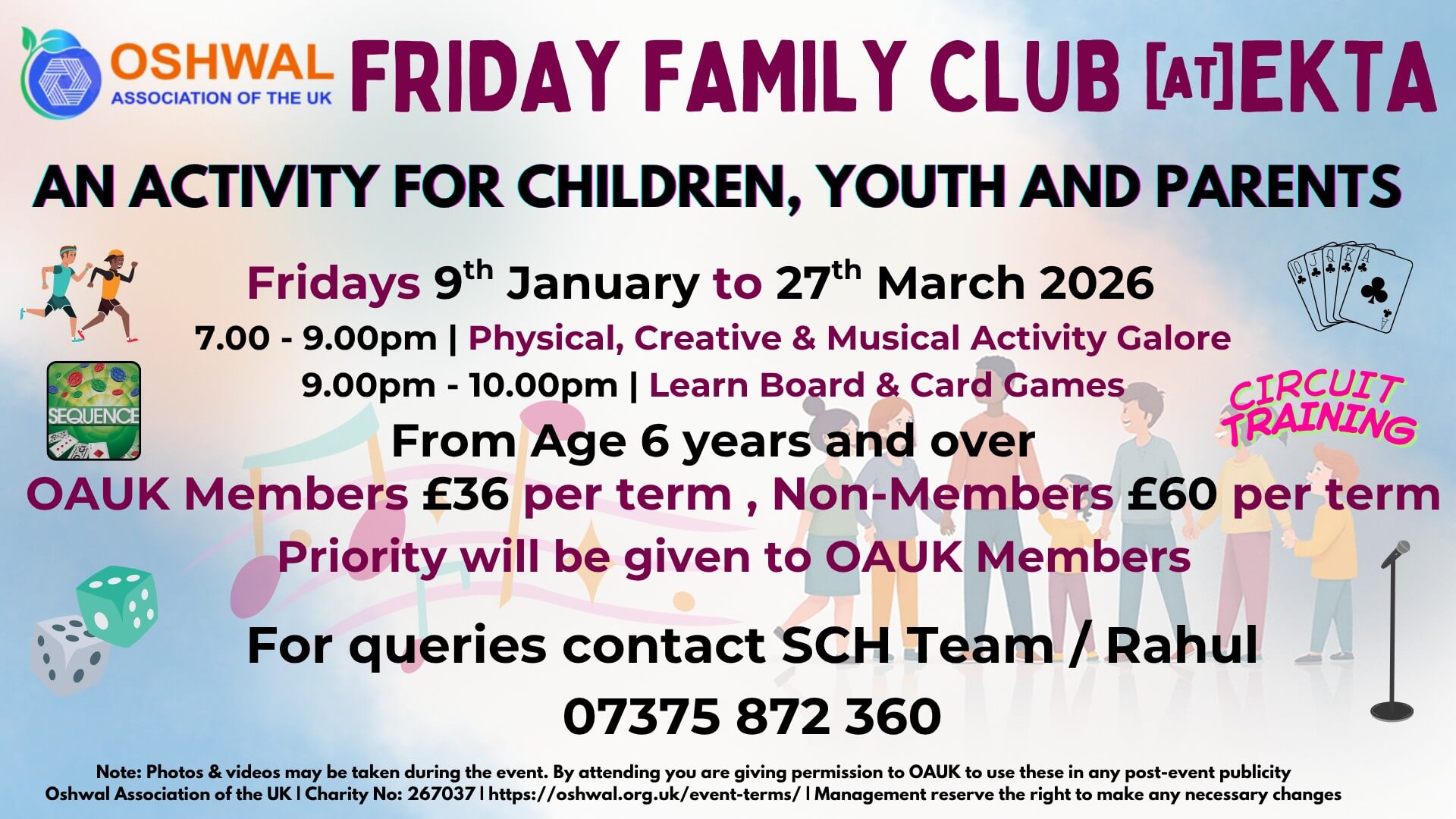 Date : Fridays 9th Jan 2026 – 27th March 26