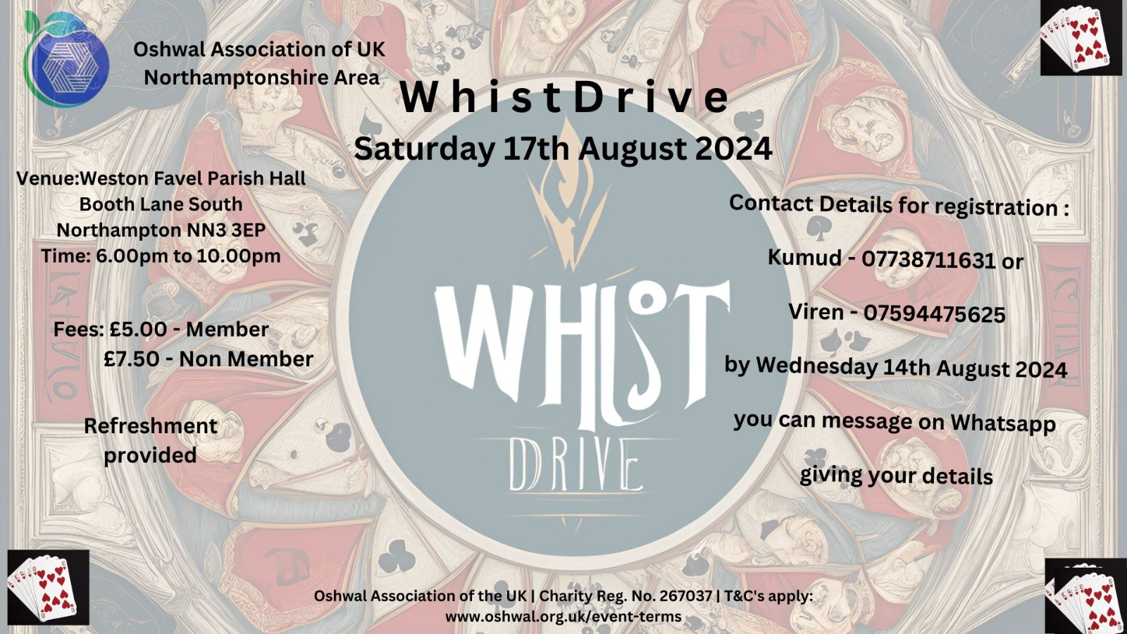 You can message on Whatsapp with your details for registration for this event