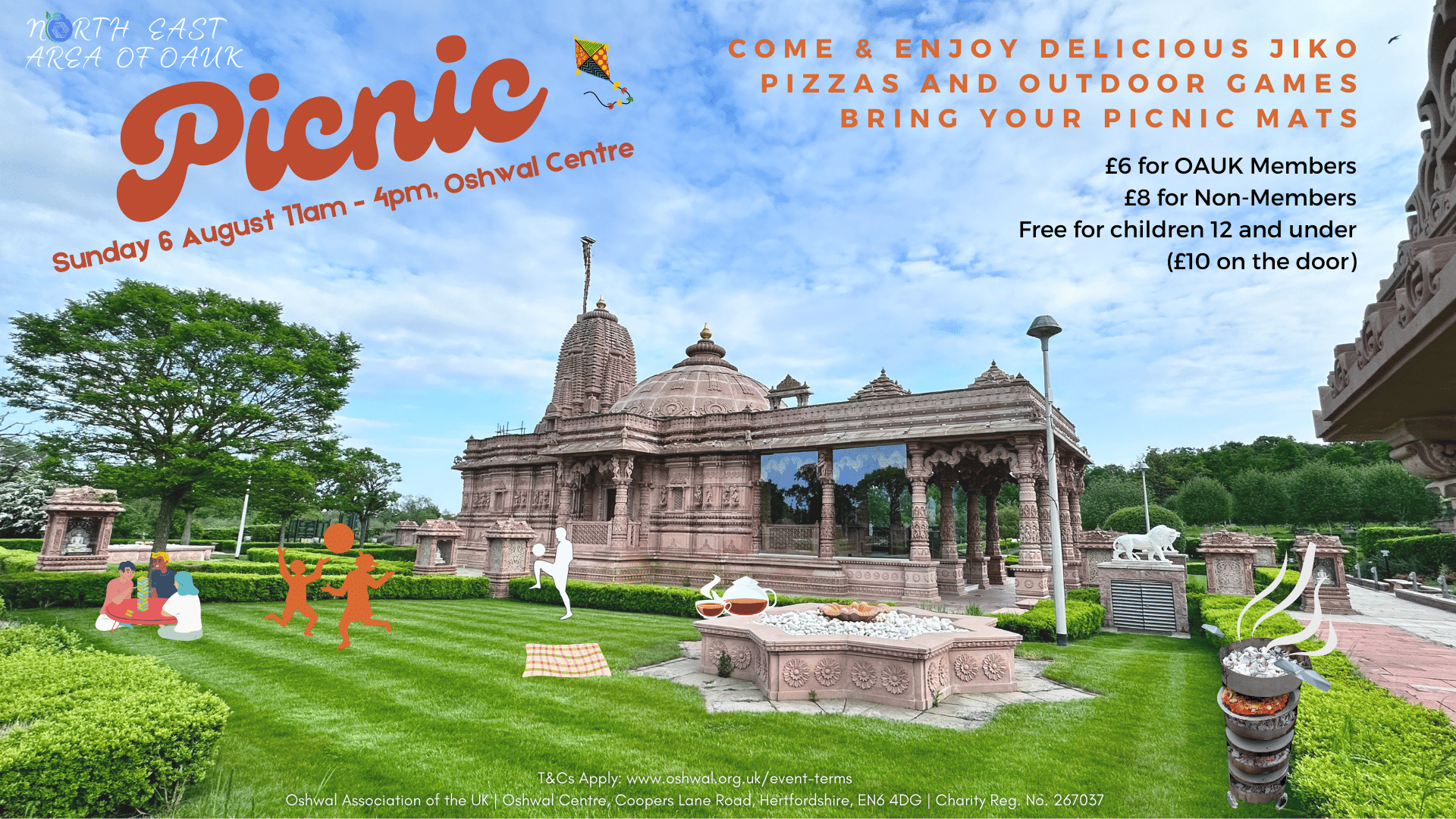 Come and join us for a picnic on the grounds of Oshwal Centre. Enjoy freshly cooked Jiko pizzas. Join in the fun and games for kids and adults. Take a walk around the Derasar.