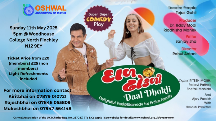 North Area are pleased to bring another Gujarati Comedy Play to the heart of North Finchley. The theatre-style seating allows a fantastic view of the stage from all seats. There will be light refreshments served. Limited Free Parking onsite and ample Street Parking around the venue.