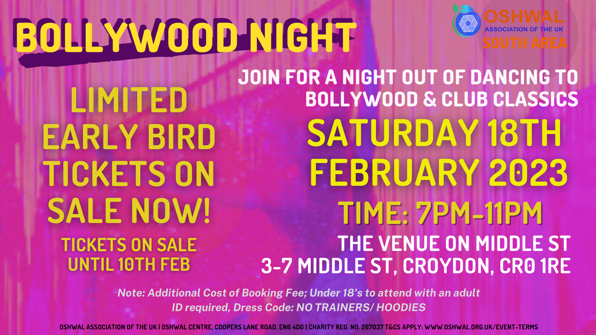 Join us for our Bollywood Night. All are invited (Aimed at our 18+ members).