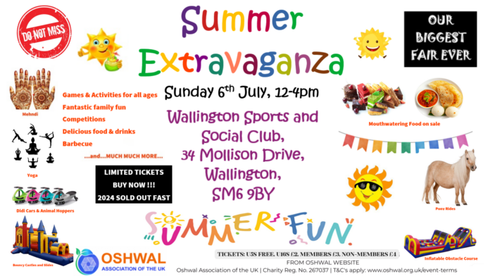 Oshwal South Area (led by OGS) is excited to invite you all to our highly anticipated Summer Extravaganza. This promises to be the biggest and most exciting edition yet. There will be a variety of entertainment for all ages, including mega inflatables, pony rides, arts and crafts, mehndi, sports, games and much much more. A wonderful opportunity for the broader communities to come together to create joyful memories. There will be multiple food stations ranging from desert stations, South and North Indian refreshments and an ice cream van, where tantalising refreshments will be on sale. Under 5s are free but please register their names online. Free parking on site. Last year sold out rapidly so get your tickets immediately! We are certain you will not want to miss this!