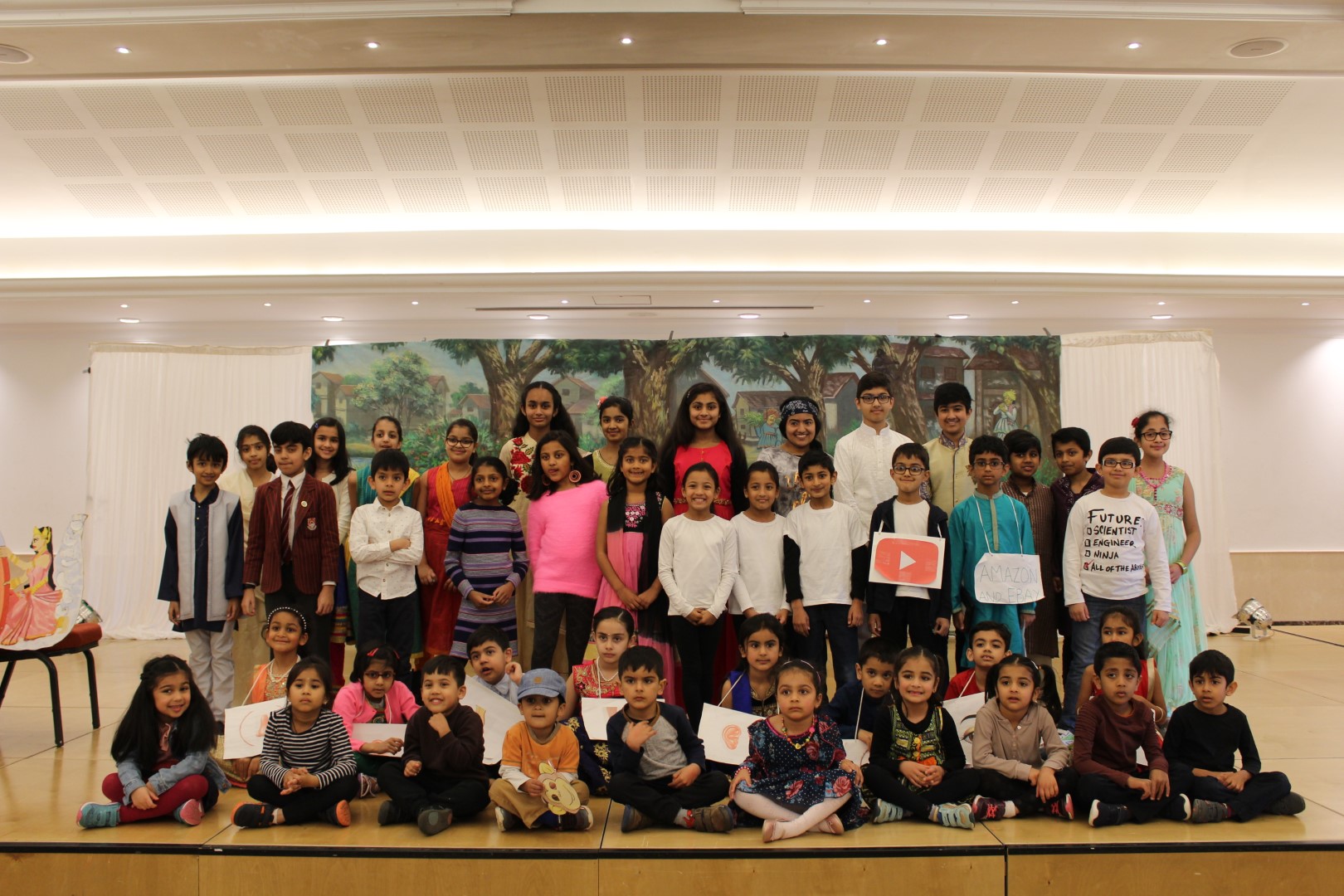 The program was held at Oshwal Centre, Potters Bar where the North West Area, North Area, South Area and West Area schools had only been practising from the beginning of this term and to produce such a sensational program can only be attributed to the hard work and perseverance by teachers, children and parents. The children age ranging from 3to15 year olds gave an outstanding performance. We were all stunned by the acting and the sweet, melodious Gujarati spoken by these little ones.