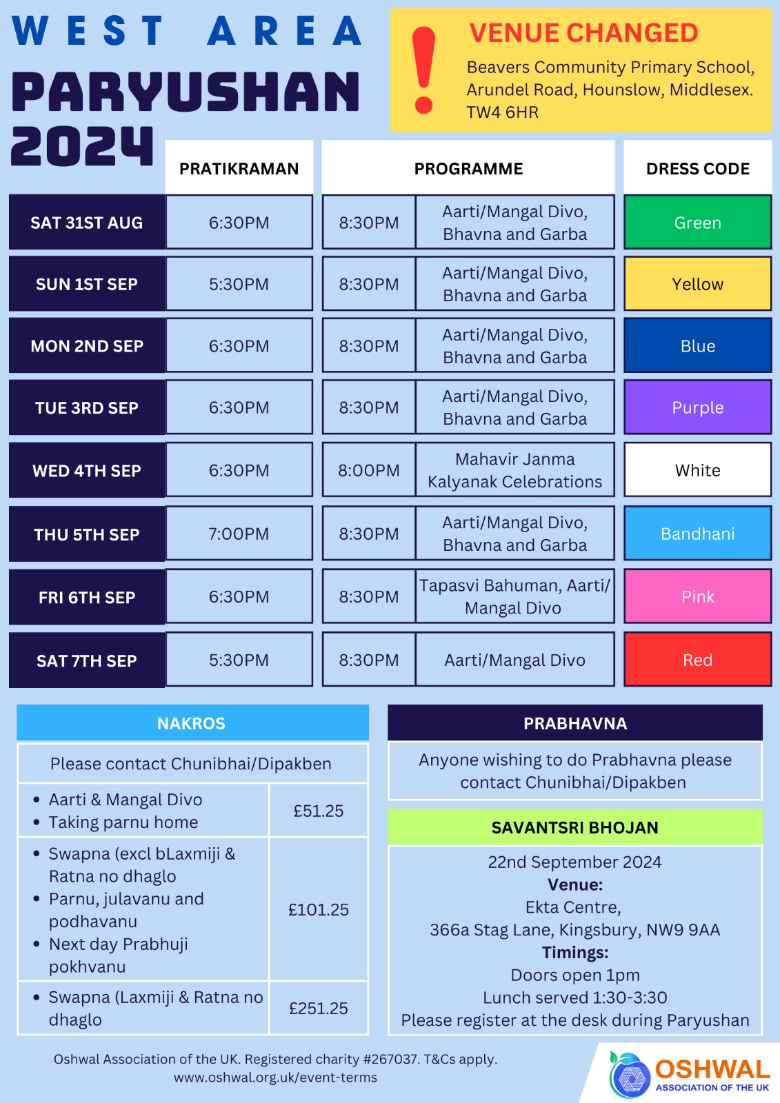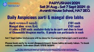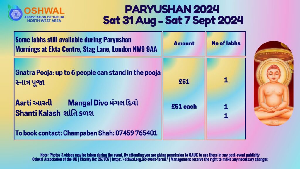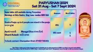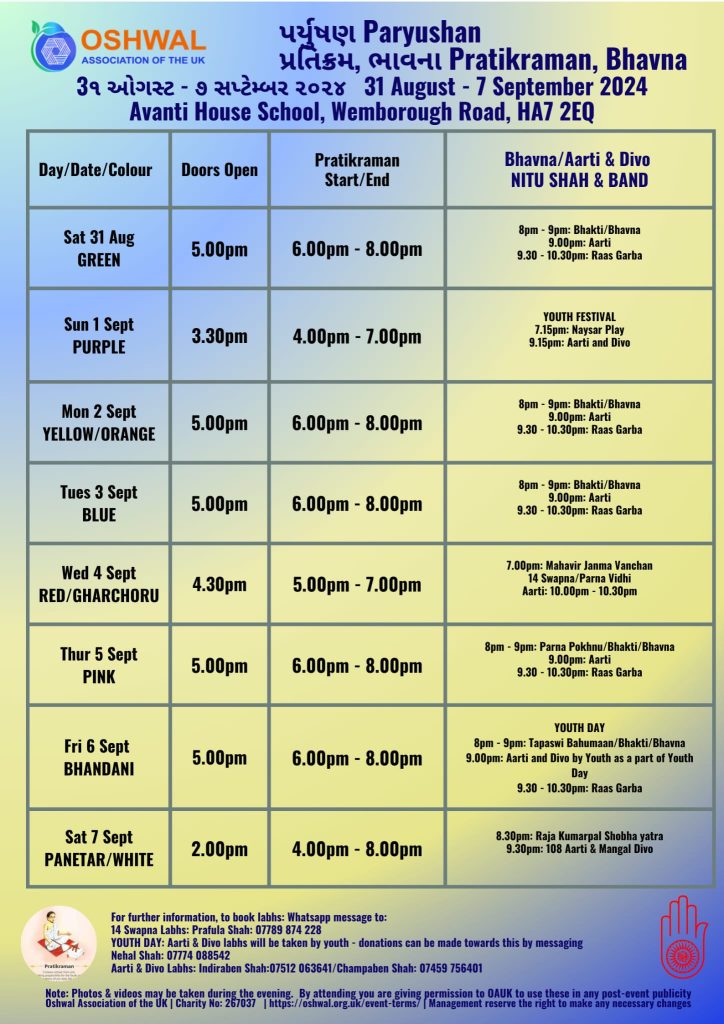 Paryushan 2024 – North West (Please note timings have been updated. Updated timings in the image below)