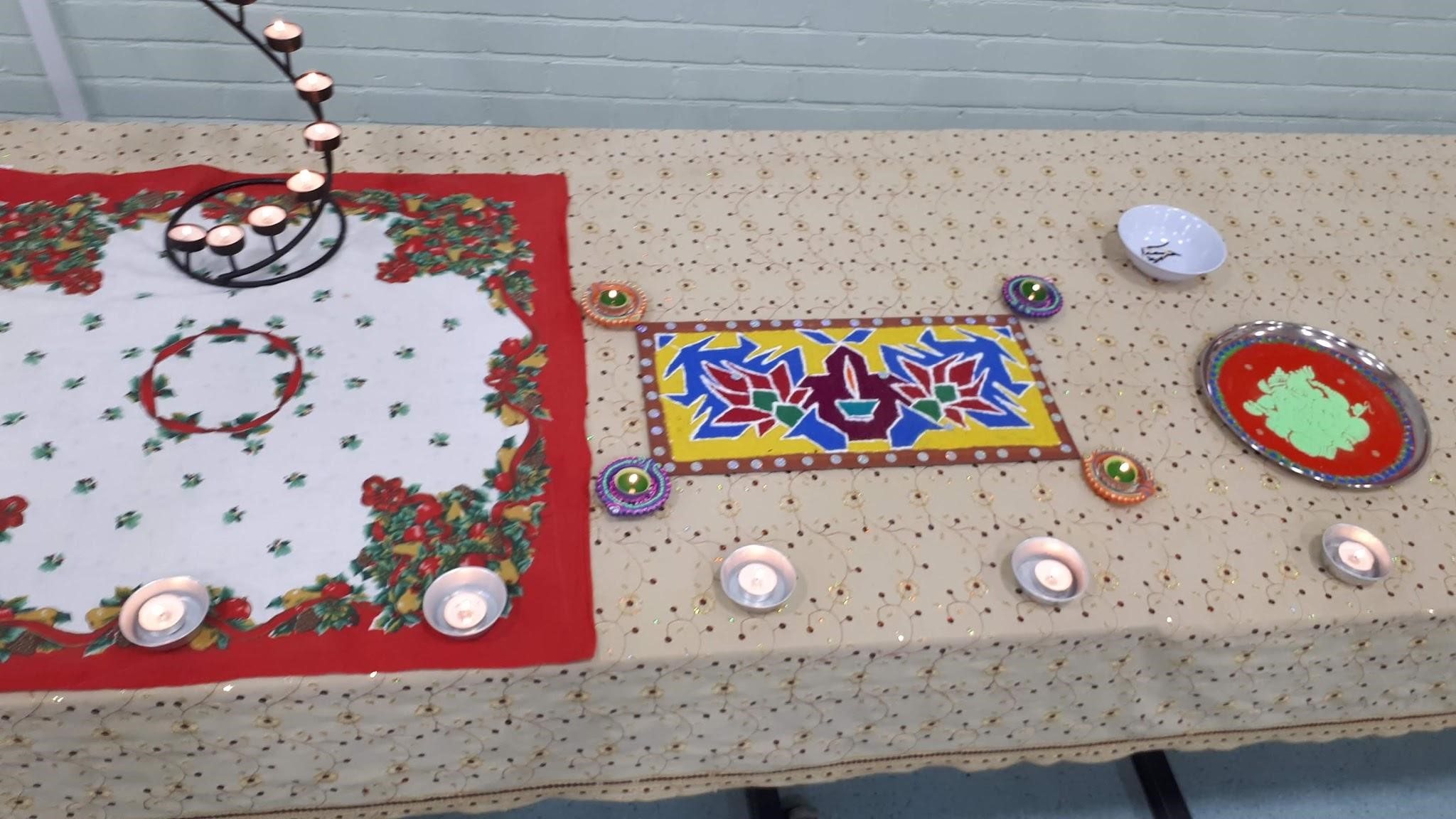 27 ઓક્ટોબર, 2018 ના રોજ, પૂર્વ એરીઆમાં, સેવન કિંગ્સમાં, સેન્ટ જોન્સ ચર્ચ હોલ, ખાતે બિજલ બેન દ્વારા રંગોલી પ્રદર્શનનું આયોજન કરવામાં આવ્યું હતું.