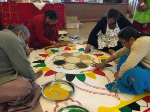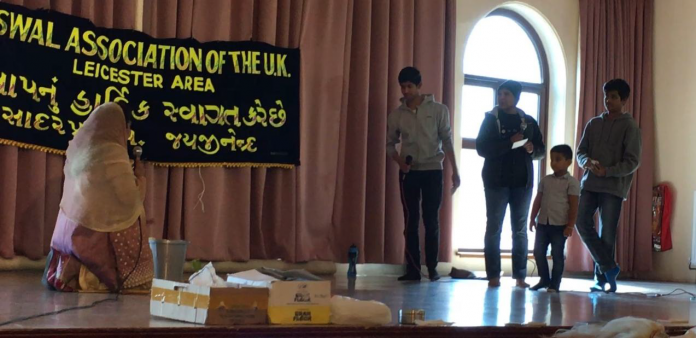 This year Mahavir Janma Kalyanak was celebrated on Sunday 23rd April 2017 at Shree Sanatan Mandir. Besides the arrangements prior to the event, the day started with volunteers arriving to help with the event at 7am in the morning. It is remarkable to see how all got on with various activities … from cleaning the utensils to chopping the vegetables, from the ‘vaghar’ to the setting up of the tables and chairs. Some volunteers took part in decorating Siddth Chakra Patt.