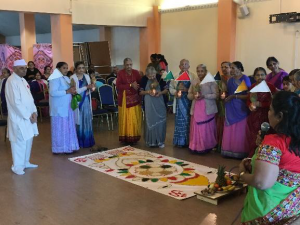 After lunch all settled down for Bhakti and religious entertainment where some members took part in performing two short plays – one of the plays was in relation to World Earth Day looking at ways to protect our surroundings and the planet as a whole, and the other one concerning Charity and Community.