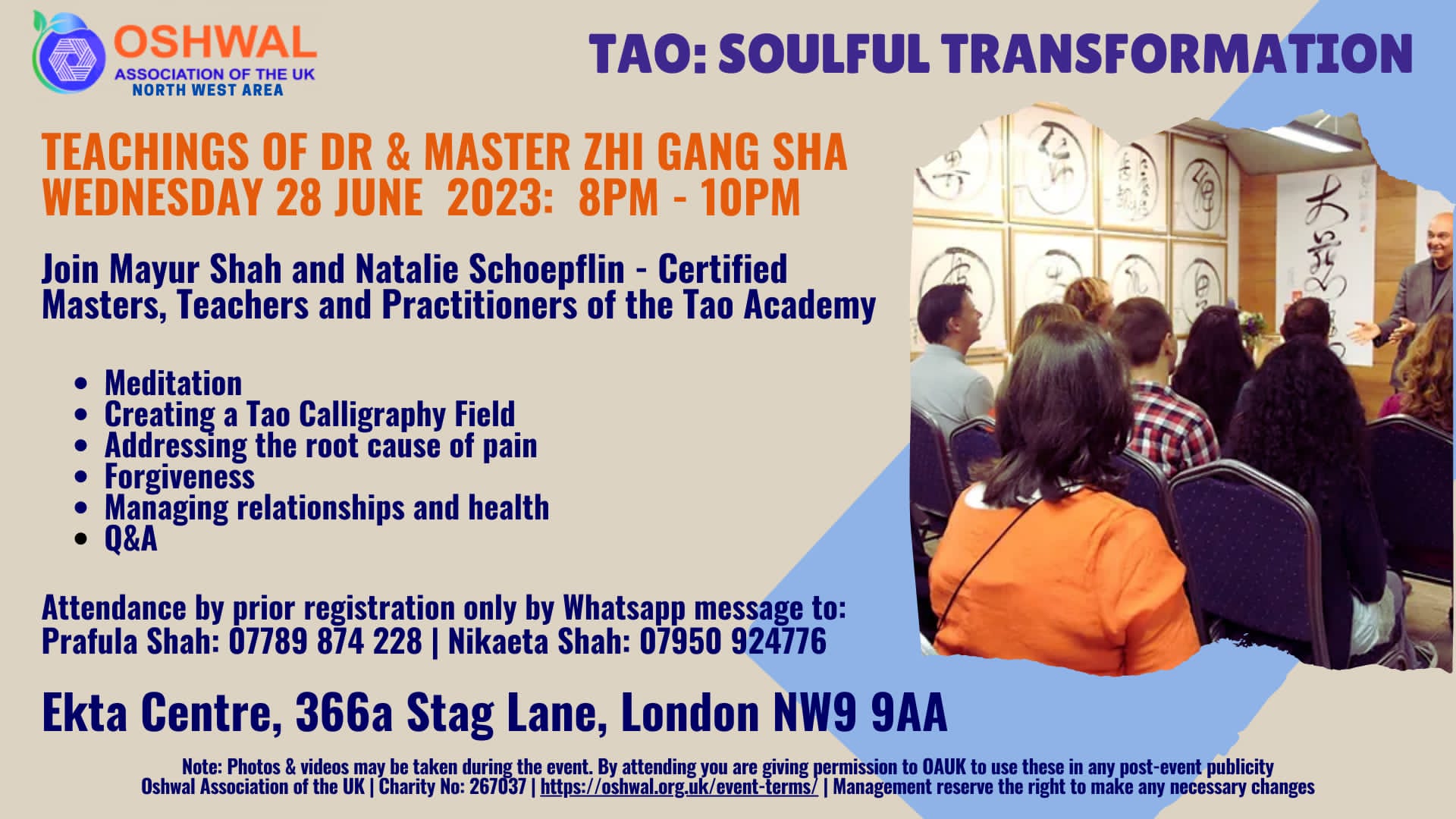 Attendance is by prior registration only by Whatsapp message to: