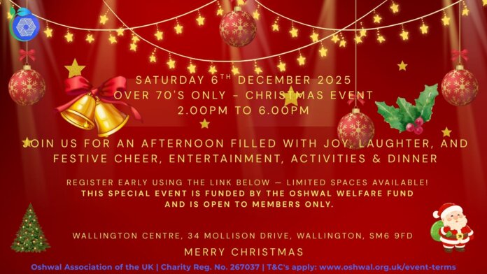 South Area – Monthly Elderly Luncheon Date: Saturday, 6th December 2025 Time: 2:00pm – 6:00pm Venue: Oshwal Sport and Social Centre, Wallington We have reached maximum attendance capacity for this event and registration is now closed.
