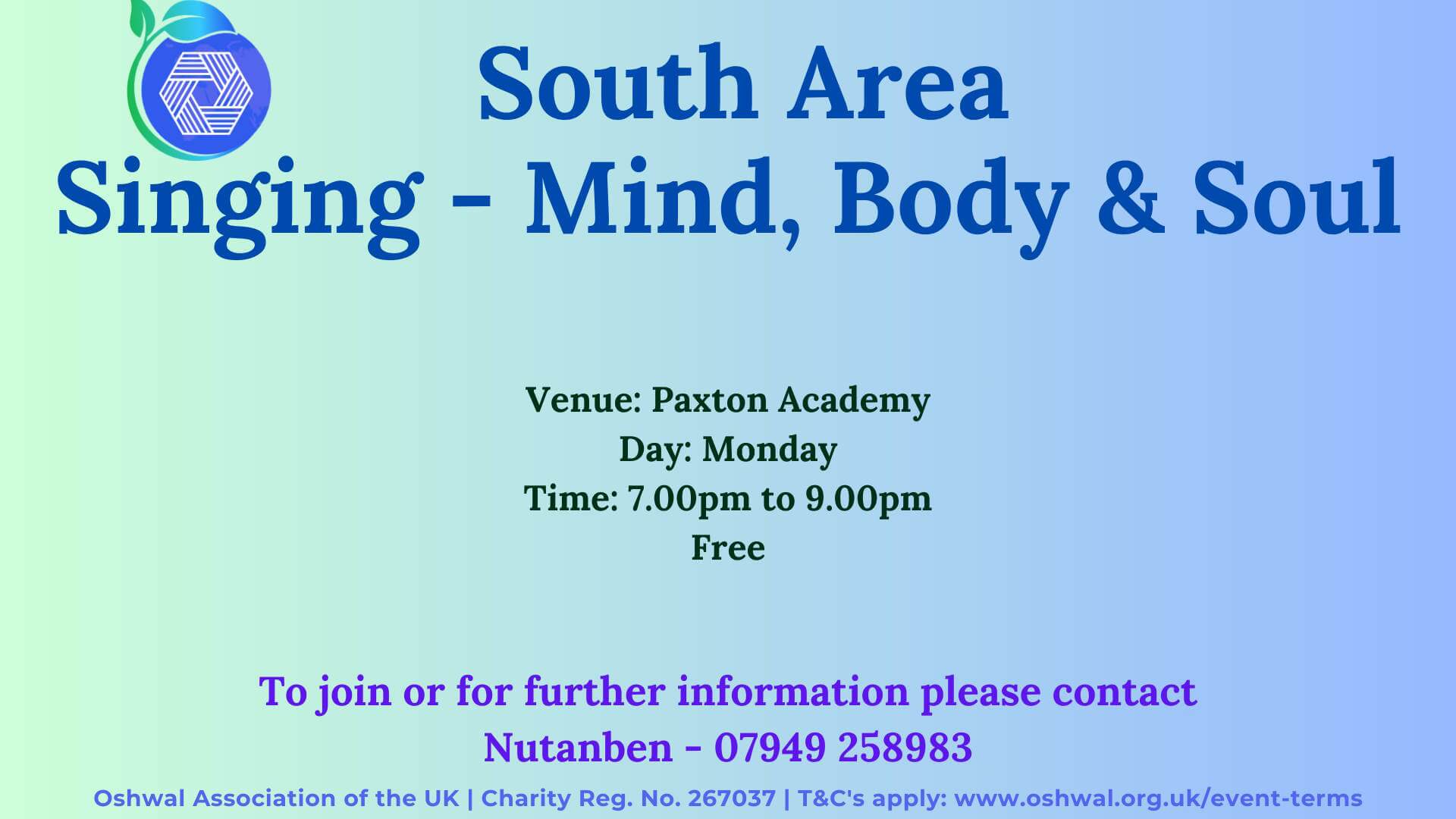 South Area would like to invite you for Singing – Mind, Body & Soul !