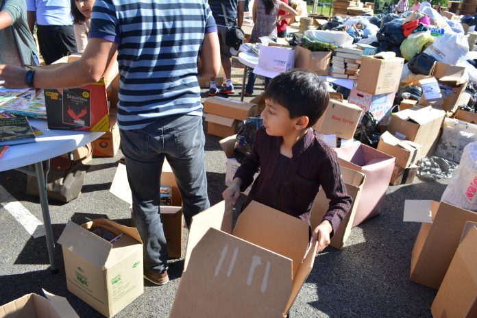 The Collection Drive is going strong with kids helping sort, organise and pack the mountain of donated clothes and books!