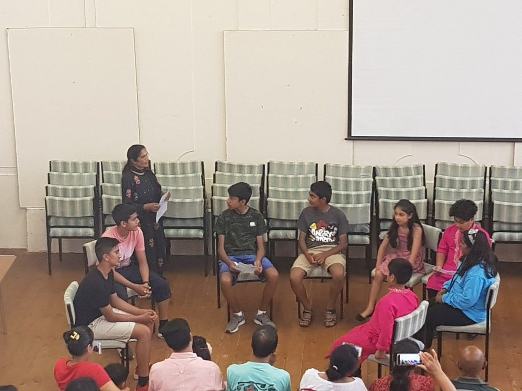 Actions were performed by the younger students to a Gujarati melody for children which makes it fun for them to learn new words with actions.