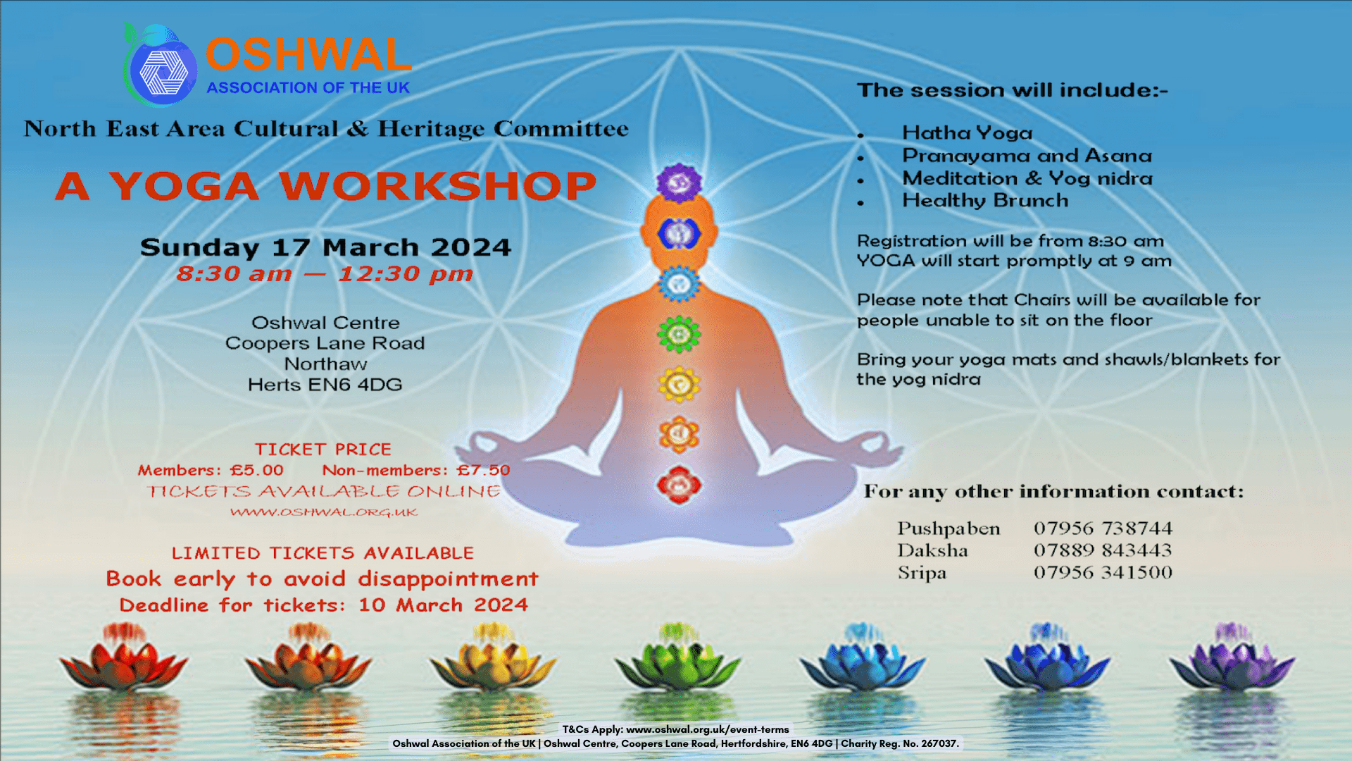 Yoga is an ancient Indian practice of wellbeing. Today the scientists and doctors all have realised the enormous benefits of regular yoga practice. Yoga promotes good health, flexibility and helps with management of stress. The attendees will learn the benefits of practicing postures, different Pranayams and how to relax in today’s stressful life.